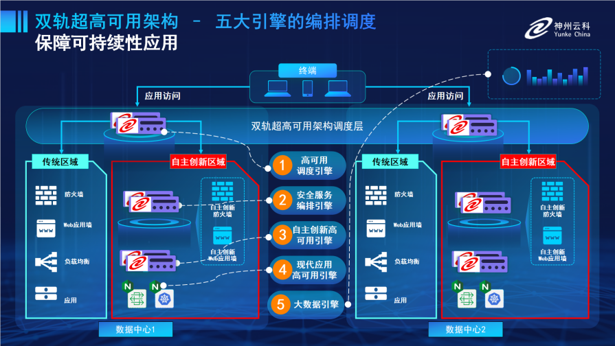 为满足数据中心双轨建设信创区和非信创区跨域协同,东升国际 东升顺利获得5大引擎实现双区无缝切换,跨域协同。